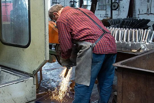After the robotic polish, another stage of manual polishing is performed. At this stage, the worker is taking additional time to check quality and ensure all areas are smooth and finished.